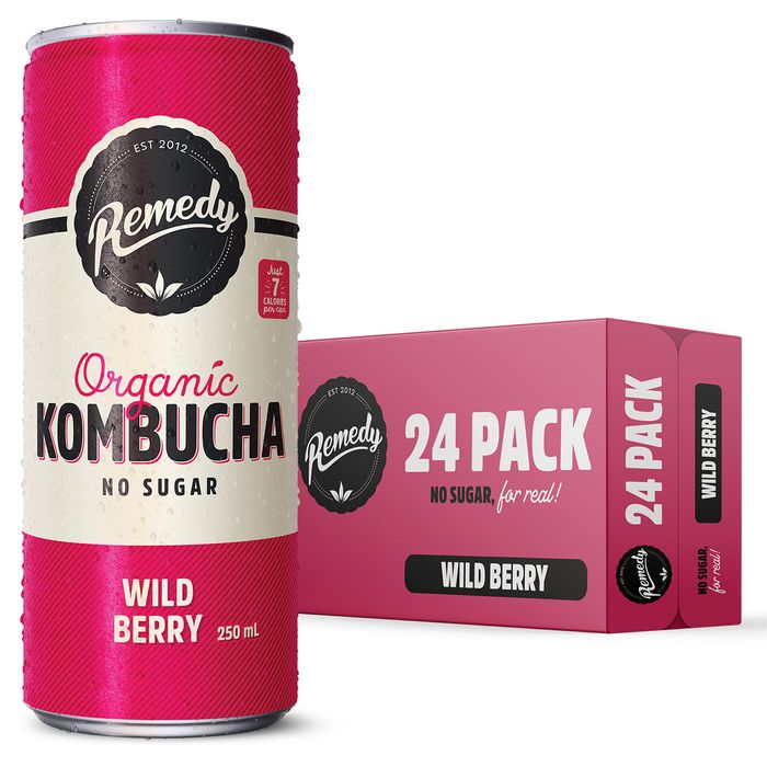 - Remedy Organic Kombucha Wild Berry No Sugar Mini Cans (24x250ml)