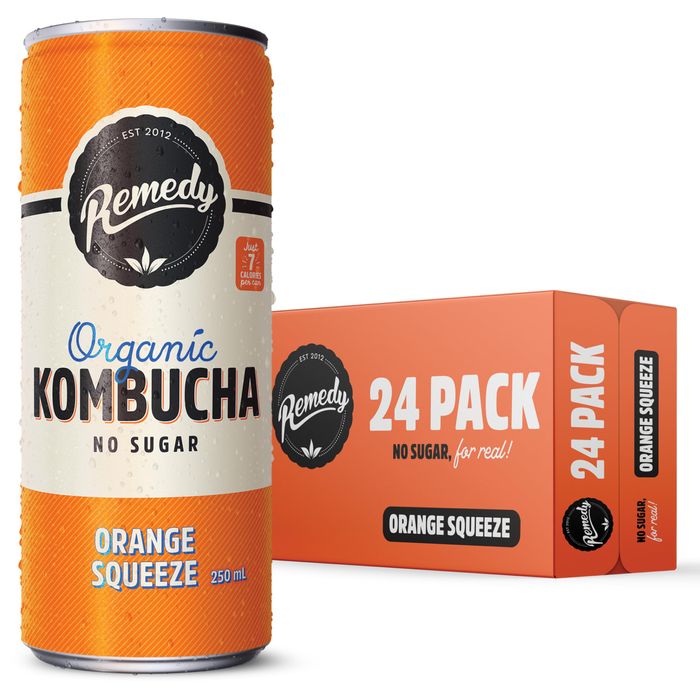 - Remedy Organic Kombucha Orange Squeeze No Sugar Mini Cans (24x250ml)
