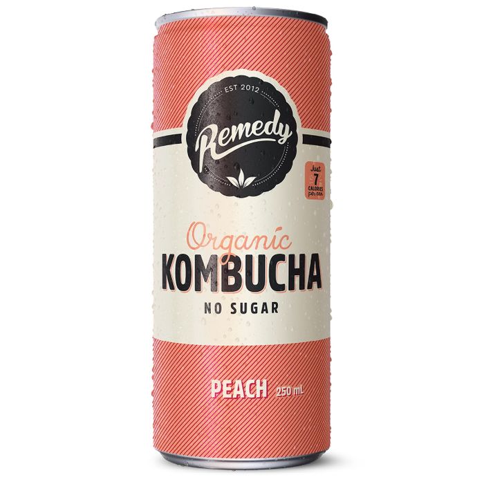 - Remedy Organic Kombucha Peach No Sugar Mini Cans (24x250ml)