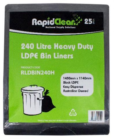 - Rapid Clean Bin Liners Heavy Duty 240 Litre (25pk)